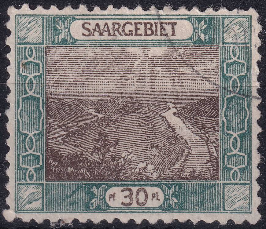 1921, Německá plebiscitní území (Sársko), 058A, Výplatní: obrázky krajiny - sárská smyčka u Mettlachu ⊙
