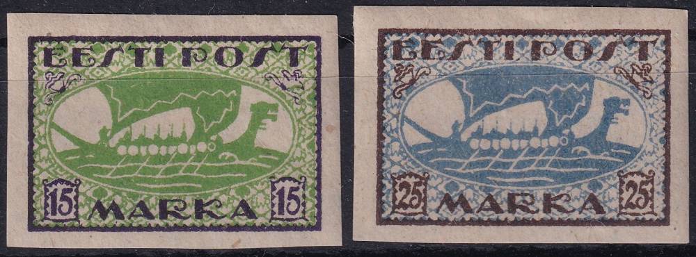 1920, Estonsko, 0023/0024B, Výplatní známky: vikingská loď ✶✶