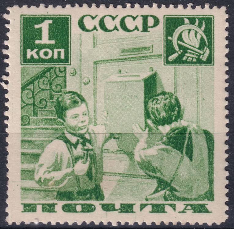 1936, SSSR, 0542Cx, Pionýři pomáhají poště: vybírání schránek ✶✶
