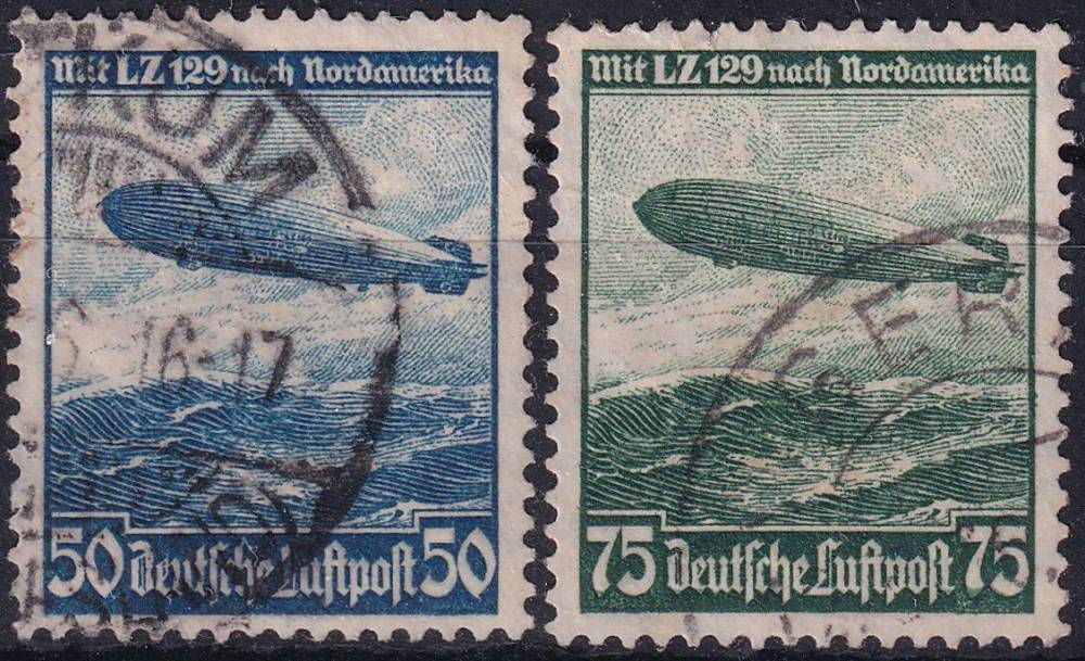 1936, Deutsches Reich, 0606/0607Y, Letecké poštovní známky: cesty vzducholodí Hindenburg L. Z. ⊙