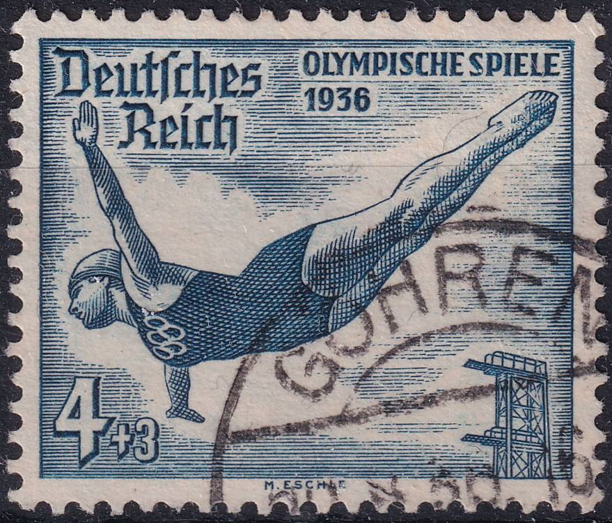 1936, Deutsches Reich, 0610, Letní olympijské hry, Berlín: skoky do vody ⊙
