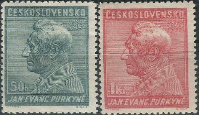 1937, ČSR I, 0322/0323, 150. výročí narození J. E. Purkyně ∗