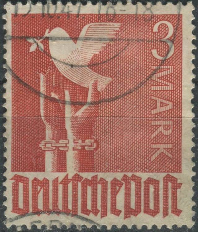 1947, Německá pošta (vydání pro spojené okupační zóny), 961, Výplatní známka: II. vydání Kontrolní rady - Holubice míru ⊙