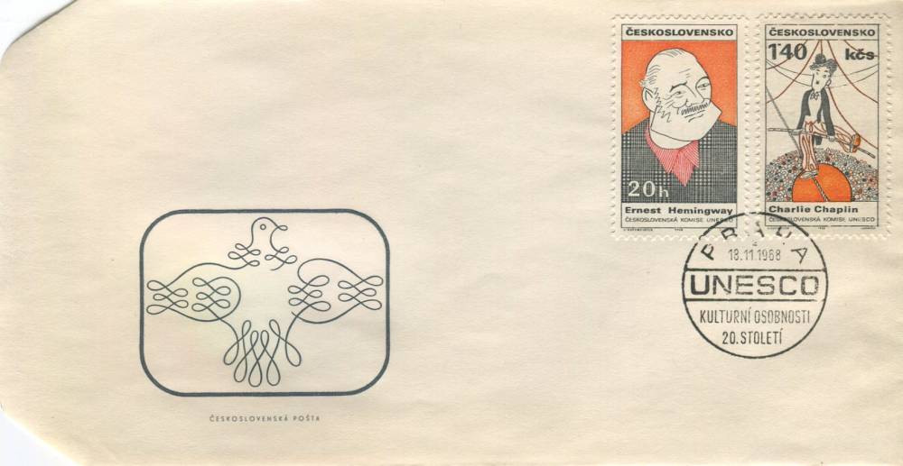 1968, ČSR II, FDC28A/68, Světové kulturní osobnosti - UNESCO