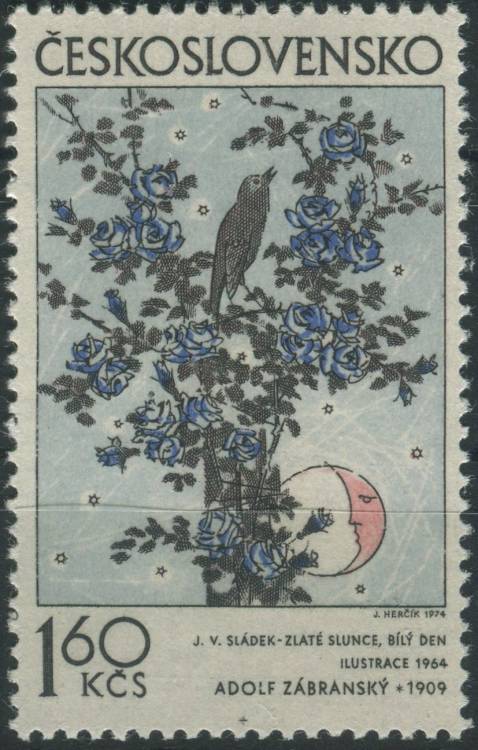 1974, ČSR II, 2069, Česká a slovenská grafika: A. Zábranský - Slavík a vrabci ∗∗