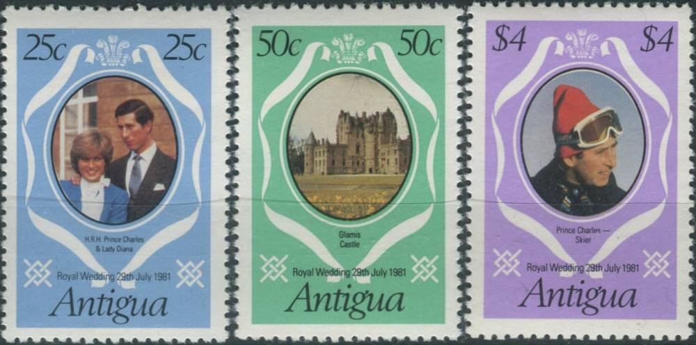 1981, Antigua, 0628/0630C, Svatba Prince Charlese a Lady Diany Spencerové (I) ✶✶