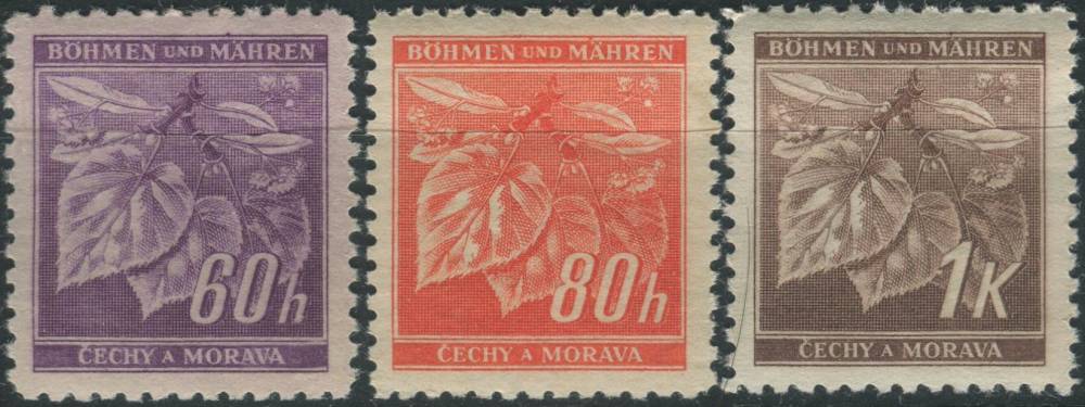 1941, Protektorát, 054/056, Výplatní známky: Lipové listy (ocelotisk) ∗∗
