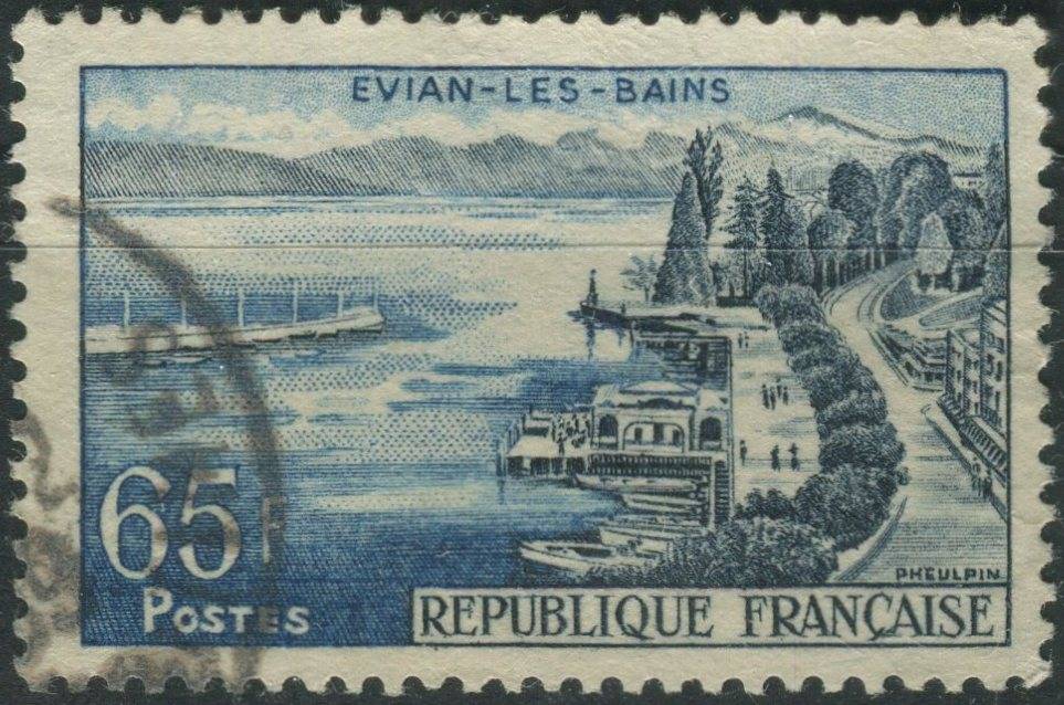 1957, Francie, 1166, Výplatní známka: Regiony - Evian-les-Bains ⊙