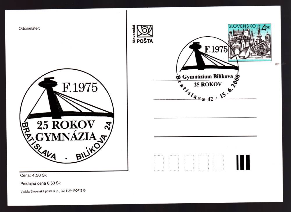 2000, Slovensko, CDV046, Gymnázium na Bilíkové ulici, pamětní ⊙
