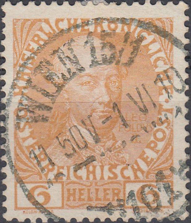 1908, Rakousko, 0143, Výplatní známka: 60. výročí vlády Františka Josefa - Leopold II. ⊙