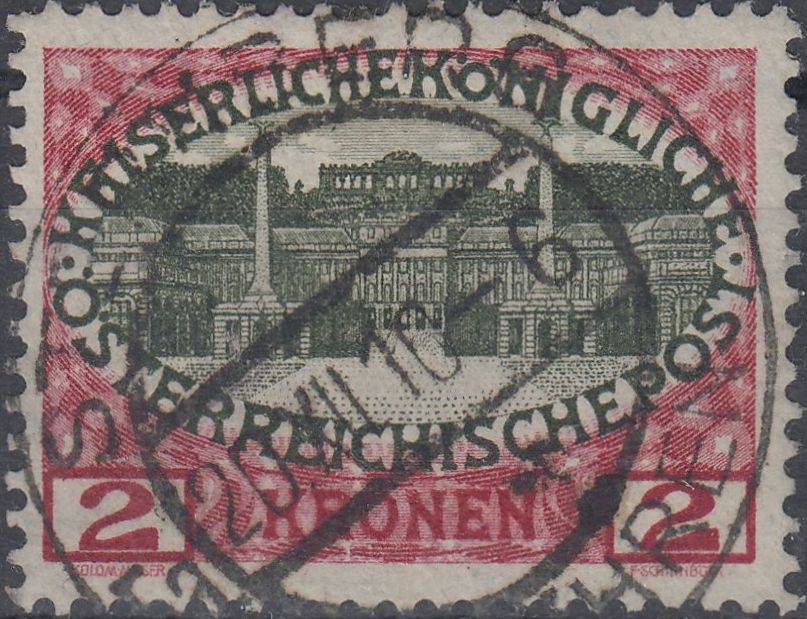 1908, Rakousko, 0154, Výplatní známka: 60. výročí vlády Františka Josefa - Zámek Schönbrunn ⊙