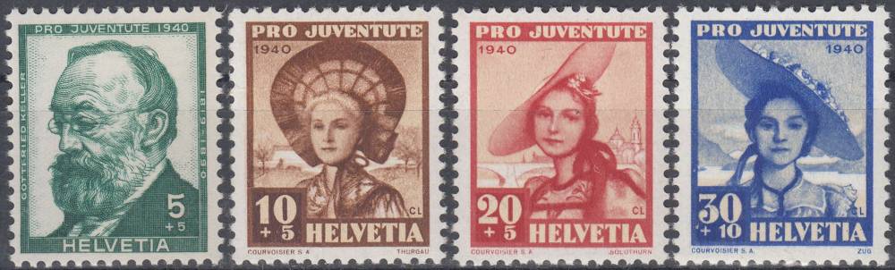 1940, Švýcarsko, 0373/0376, Pro Juventute: Gottfried Keller, Kroje, **
