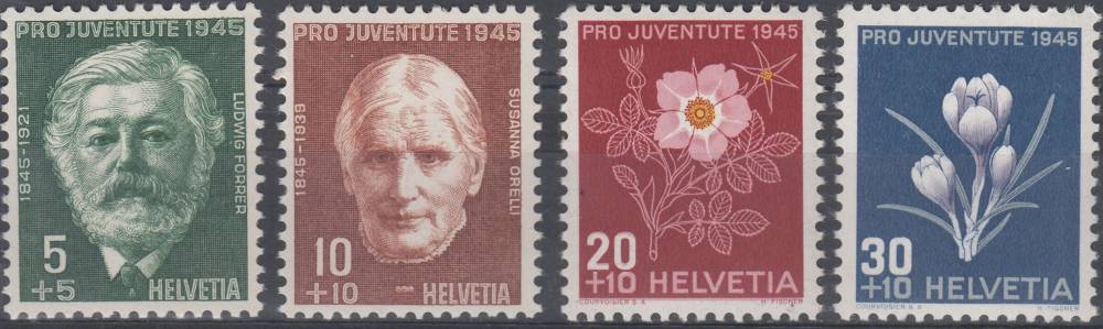 1945, Švýcarsko, 0465/0468, Pro Juventute: 100. výročí narození Ludwiga Forrera a Susanny Orelli, Květiny, **