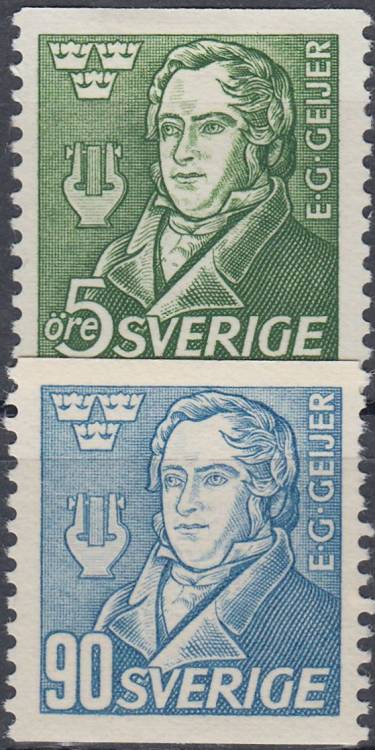 1947, Švédsko, 0327A/0328A, 100. výročí úmrtí Erika Gustafa Geijera ∗∗/∗