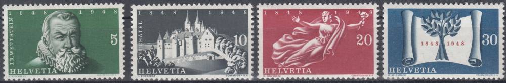 1948, Švýcarsko, 0496/0499, 100 let Švýcarského spolkového státu, 300 let nezávislosti, **