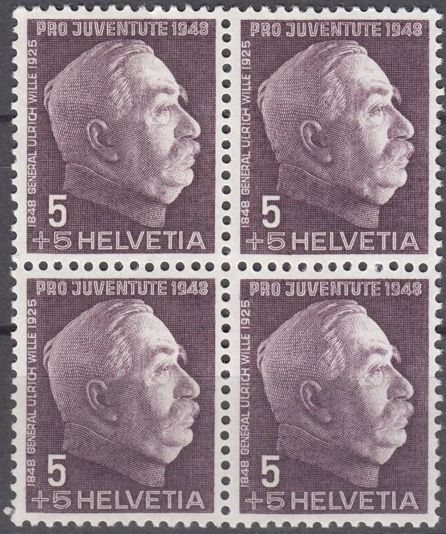 1948, Švýcarsko, 0514, Pro Juventute: 100. výročí narození Ulricha Willeho, 4blok, **
