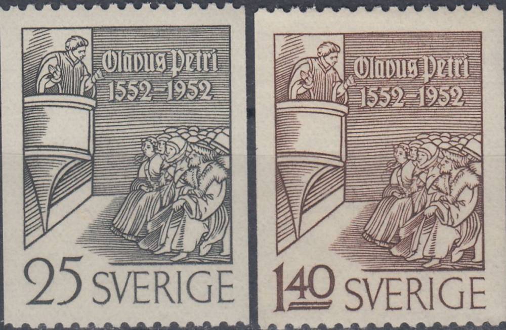 1952, Švédsko, 0367C/0368C, 400. výročí úmrtí švédského reformátora Olavuse Petriho (1493-1552) ∗∗