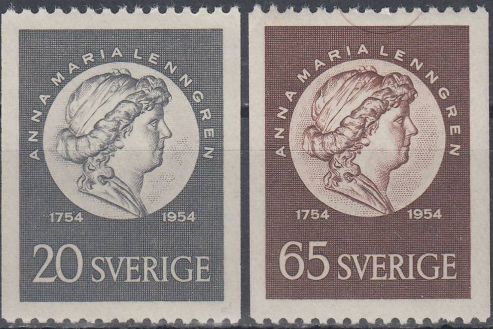 1954, Švédsko, 0394C/0395C, 200. výročí narození Anny-Marie Lenngrenové ∗∗