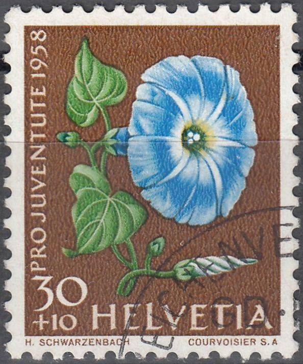 1958, Švýcarsko, 0666, Pro Juventute: Zahradní květiny - Ipomoea nil var. coerulea, ⊙