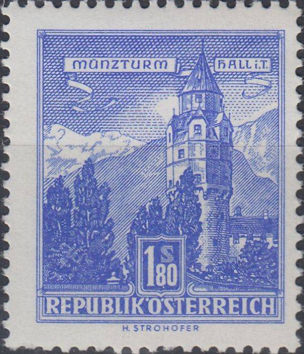 1960, Rakousko, 1048, Výplatní známka: Stavby ∗∗