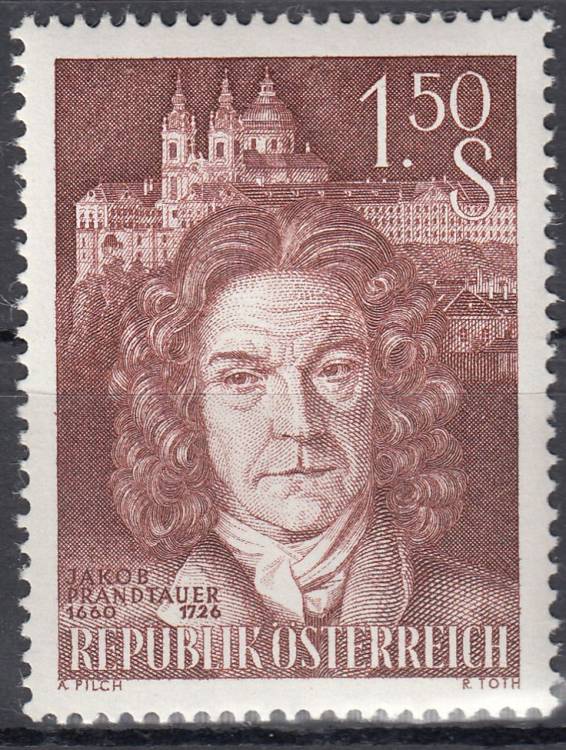 1960, Rakousko, 1079, 300. výročí narození Jakoba Prantauera, **