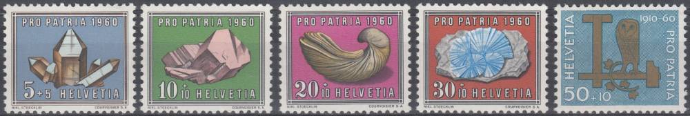 1960, Švýcarsko, 0714/0718, Pro Patria: Řemesla, Minerály a zkameněliny **