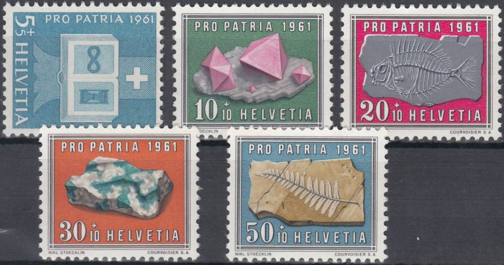 1961, Švýcarsko, 0731/0735, Pro Patria: Organizace domácí péče, Minerály a zkameněliny **