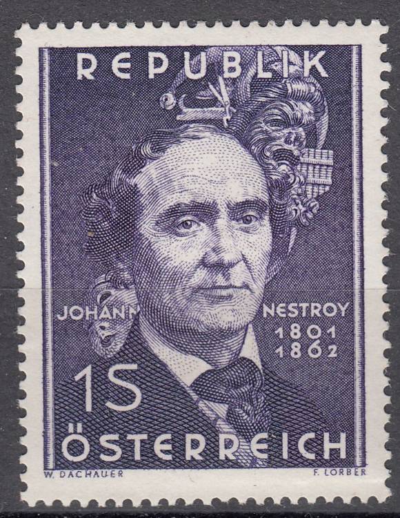 1962, Rakousko, 1109, 100. výročí úmrtí Johanna Nepomuka Nestroye, **