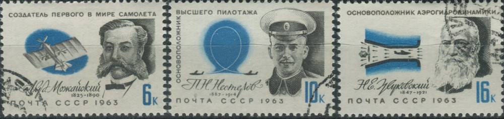 1963, SSSR, 2794/2796, Pionýři letectví ⊙
