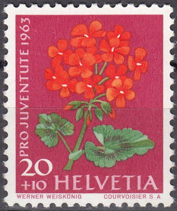 1963, Švýcarsko, 0788x, Pro Juventute: Zahradní květiny - Pelargonium hybr. **