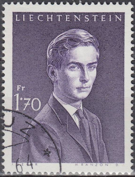 1964, Lichtenštejnsko, 0439, Výplatní známka: Korunní princ Hans-Adam ⊙