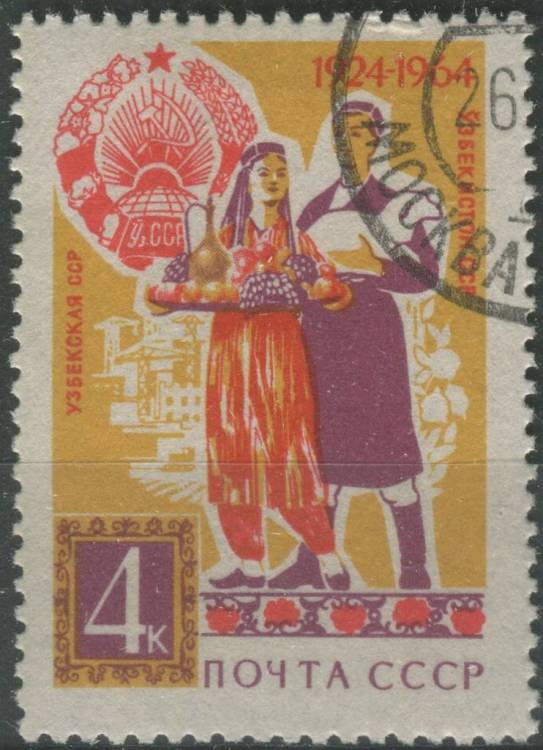 1964, SSSR, 2977, Svazové republiky (XI): 40 let Uzbecké SSR ⊙