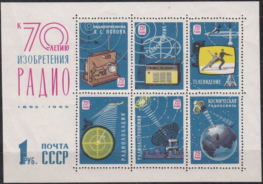 1965, SSSR, A039, 70. výročí začátku rozhlasového vysílání, **