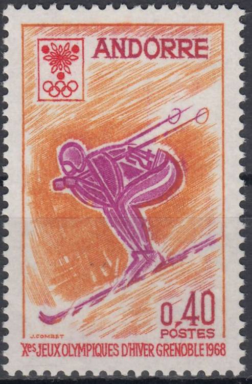 1968, Andora (Francouzská pošta), 0207, Zimní olympijské hry, Grenoble, **