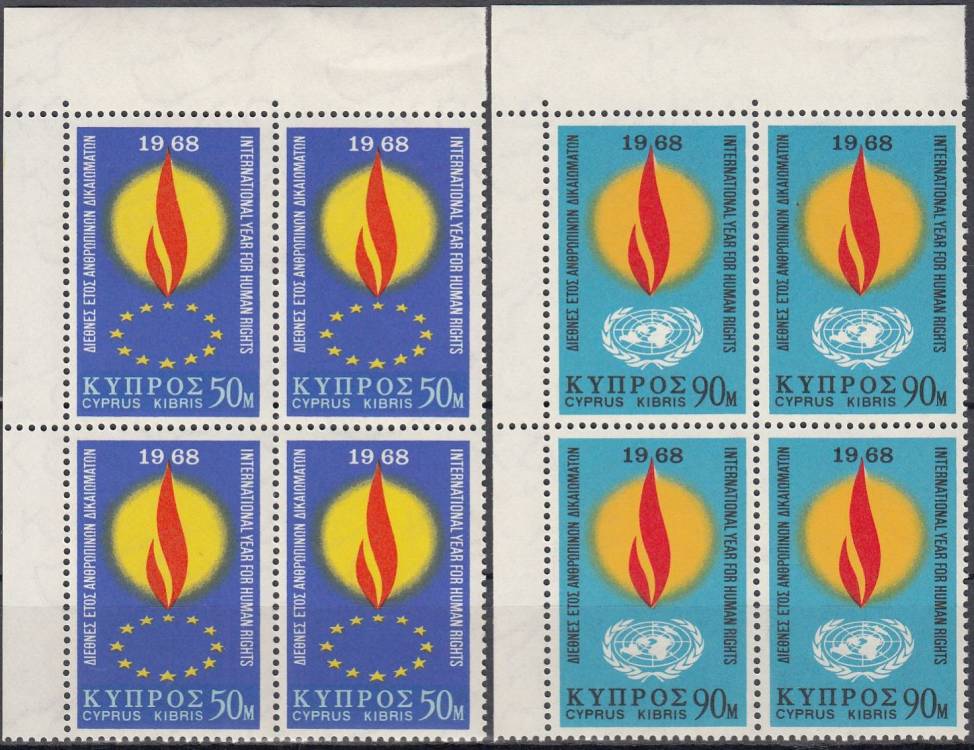 1968, Kypr, 0305/0306, Mezinárodní rok lidských práv **, 4blok, r