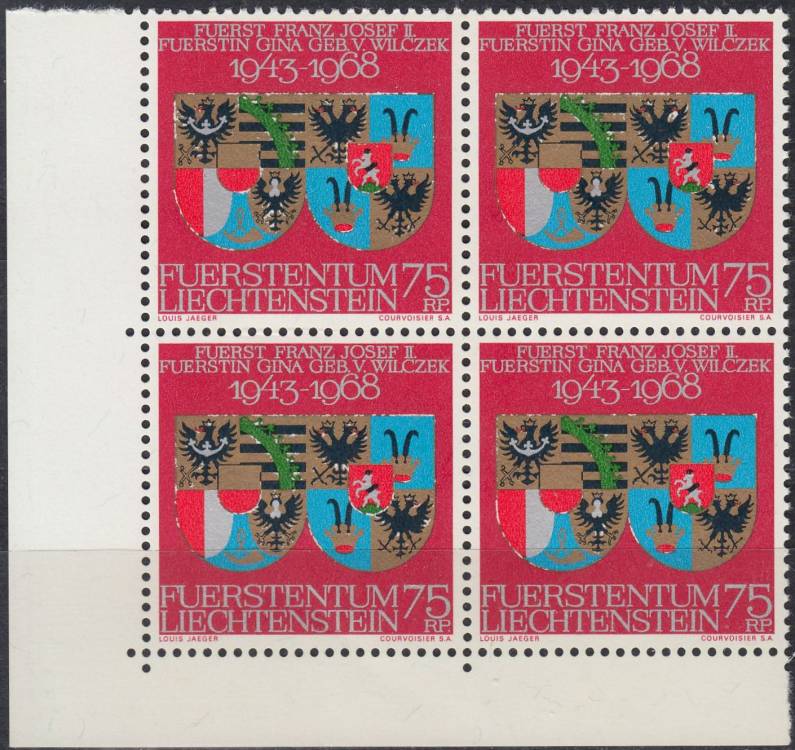 1968, Lichtenštejnsko, 0496, 25. výročí svatby knížete Františka Josefa II. a kněžny Giny ∗∗ 4blok, r