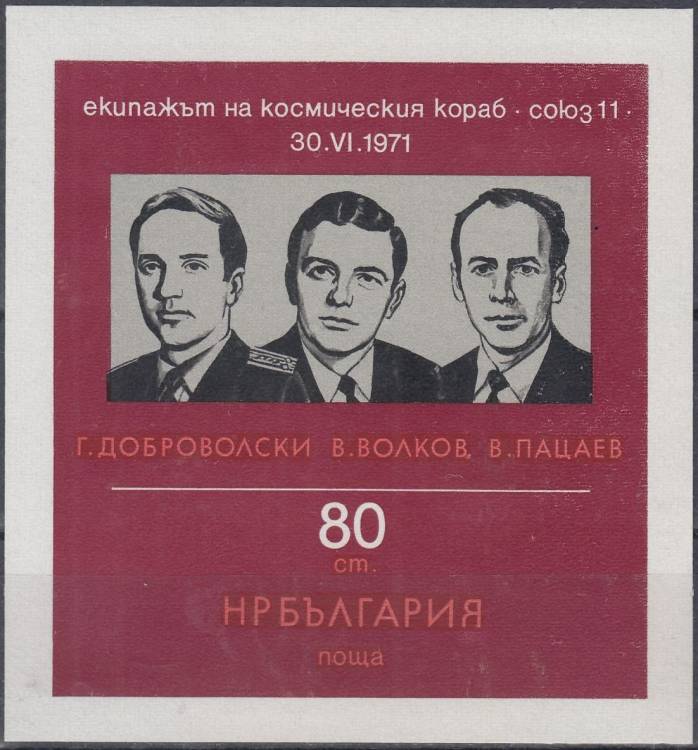 1971, Bulharsko, A034, Den sovětských kosmanautů (Sojuz 11), **