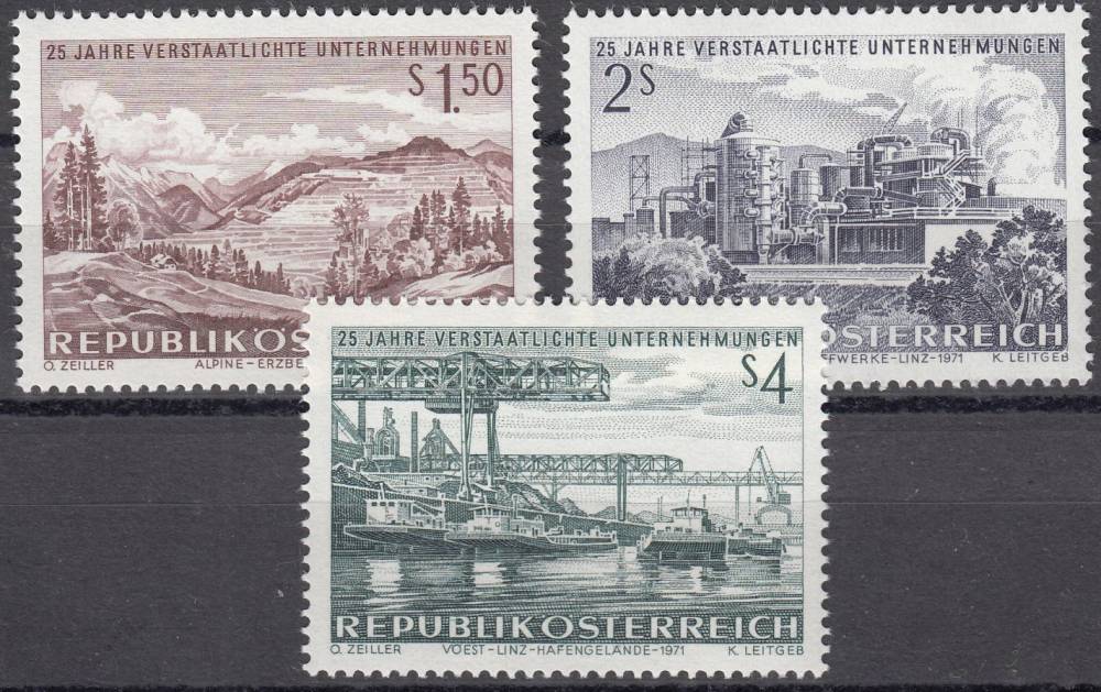 1971, Rakousko, 1373/1375, 25 let uskutečnění znárodnění, **