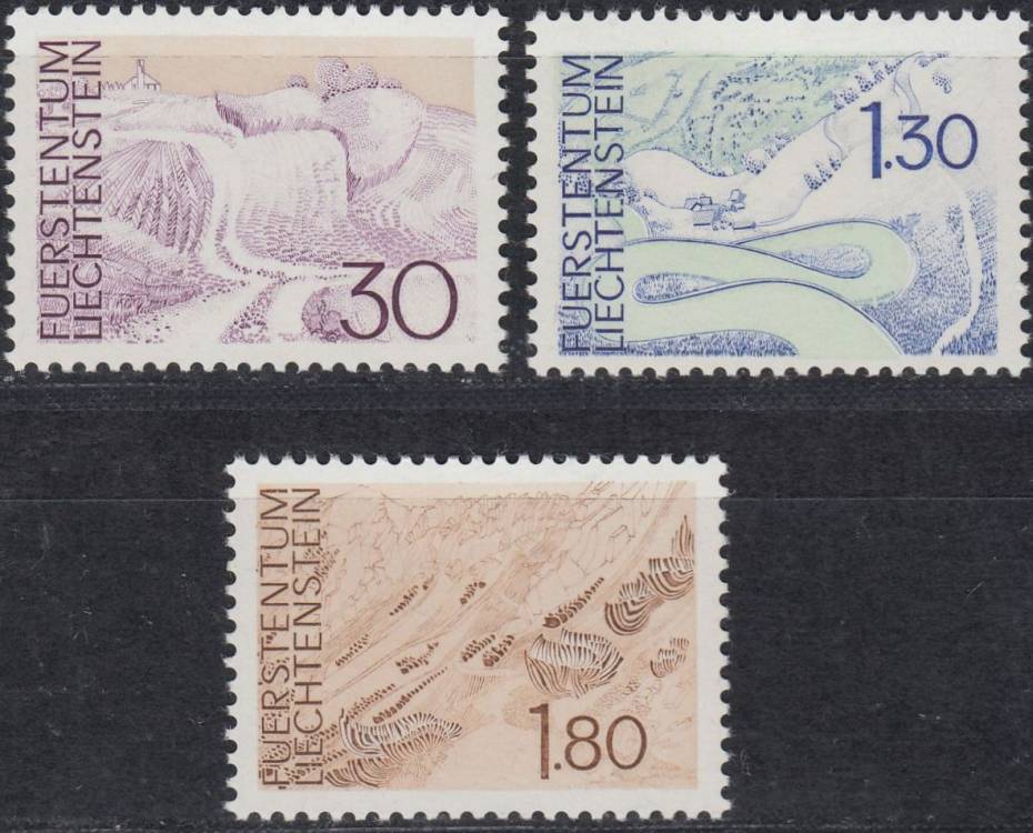 1973, Lichtenštejnsko, 0581/0583, Výplatní známky: Krajiny ∗∗
