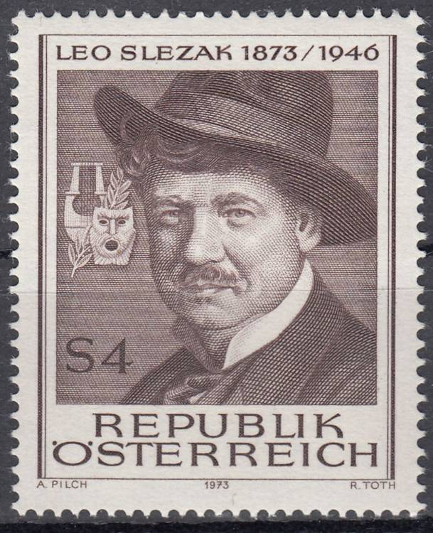 1973, Rakousko, 1419, 100. výročí narození Leo Slezaka, **