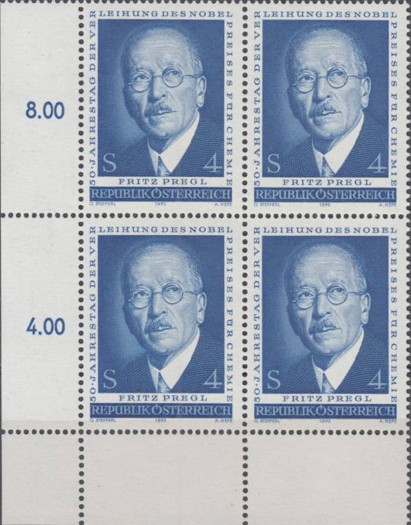 1973, Rakousko, 1436p, 50. výročí udělení Nobelovy cena za chemii Fritzovi Preglovi ∗∗ ⊞ r