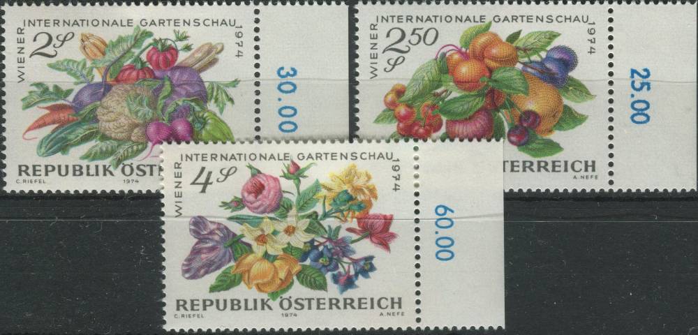 1974, Rakousko, 1444/1446p, Vídeňský Mezinárodní zahrádkářský festival ∗∗