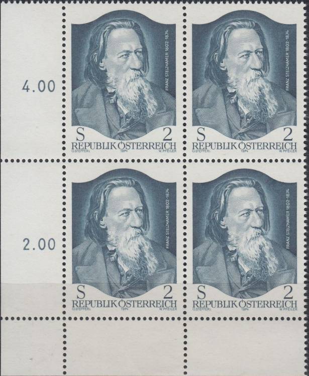 1974, Rakousko, 1460p, 100. výročí úmrtí Franze Stelzhamera ∗∗ ⊞ r