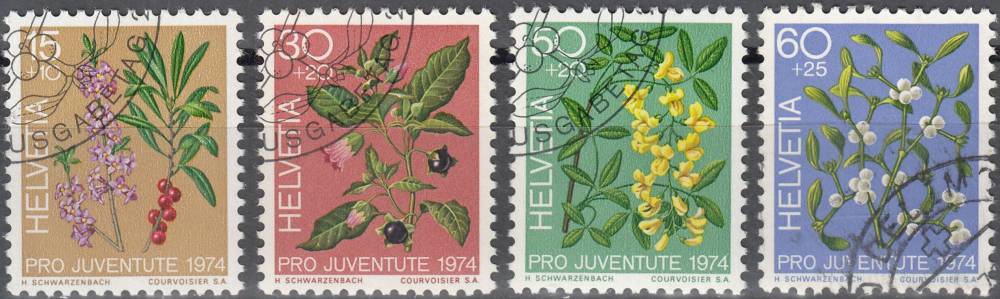 1974, Švýcarsko, 1042/1045, Pro Juventute: Lesní jedovaté rostliny ⊙