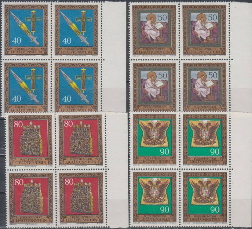 1977, Lichtenštejnsko, 0673/0676, Říšské korunovační klenoty z klenotnice ve Vídeňském Hofburgu (III) ∗∗ 4blok
