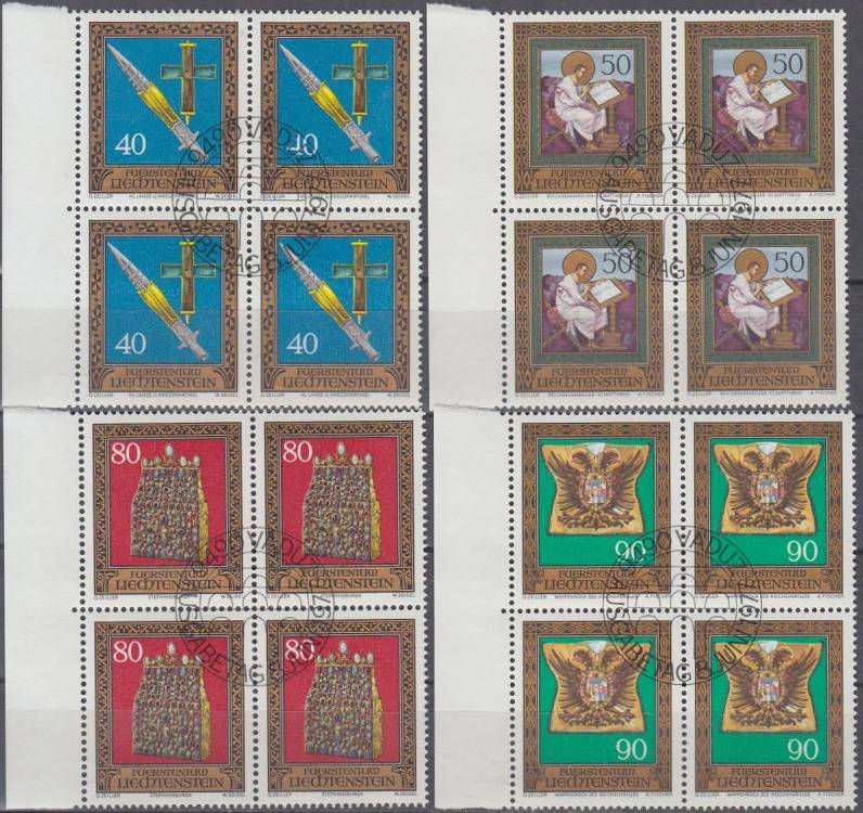 1977, Lichtenštejnsko, 0673/0676, Říšské korunovační klenoty z klenotnice ve Vídeňském Hofburgu (III) ⊙ 4blok