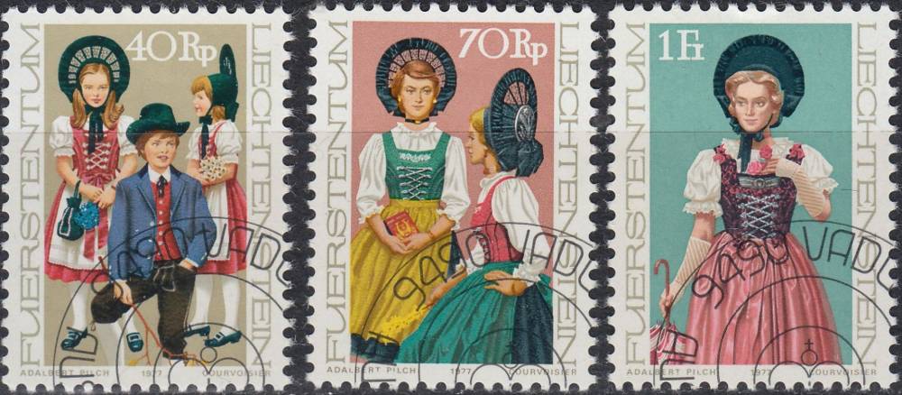 1977, Lichtenštejnsko, 0684/0686, Lichtenštejnské kroje (I) ⊙