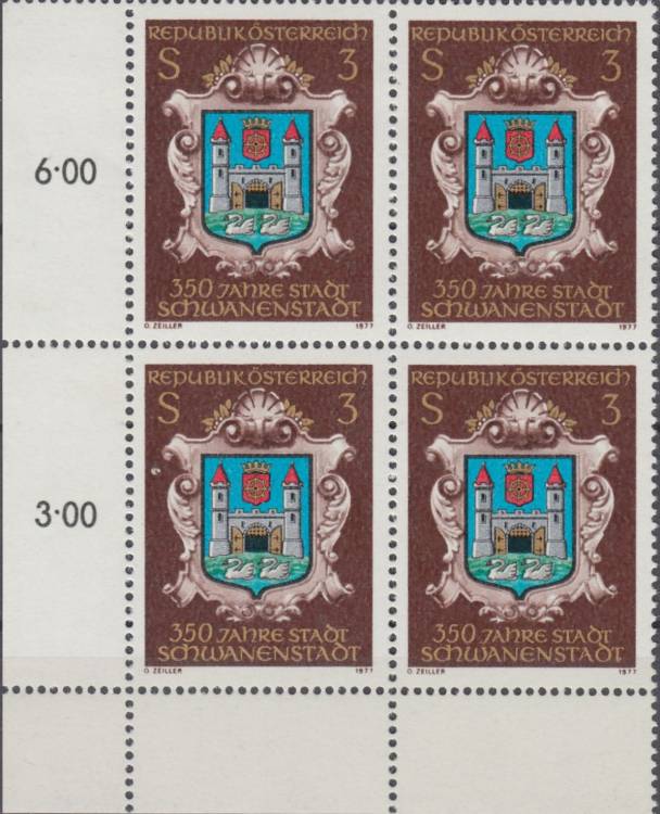 1977, Rakousko, 1552p, 350 let města Schwanenstadtu ∗∗ ⊞ r