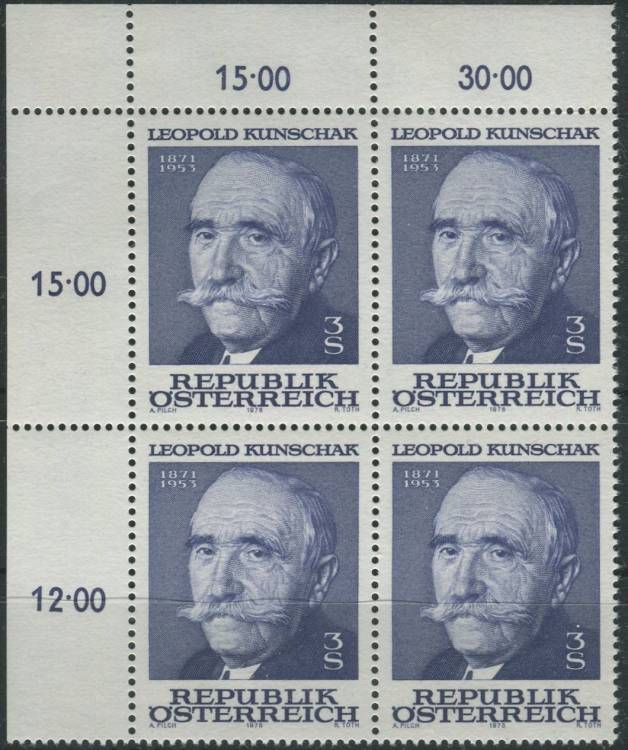 1978, Rakousko, 1569p, 25. výročí úmrtí Leopolda Kunschaka ∗∗ ⊞ r