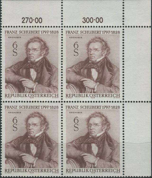 1978, Rakousko, 1590p, 150. výročí úmrtí Franze Schuberta ∗∗ ⊞ r